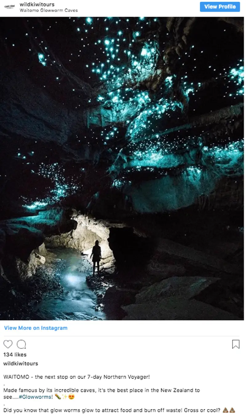 Manual settings at the ready, you’ll need some basic photography skills (and probably a tripod too!) to get this photo up on the gram. But being able to share the magic of Waitomo Glowworm Caves with your followers is sure to get some ‘oohs’ and ‘aahs’ in your comments.
