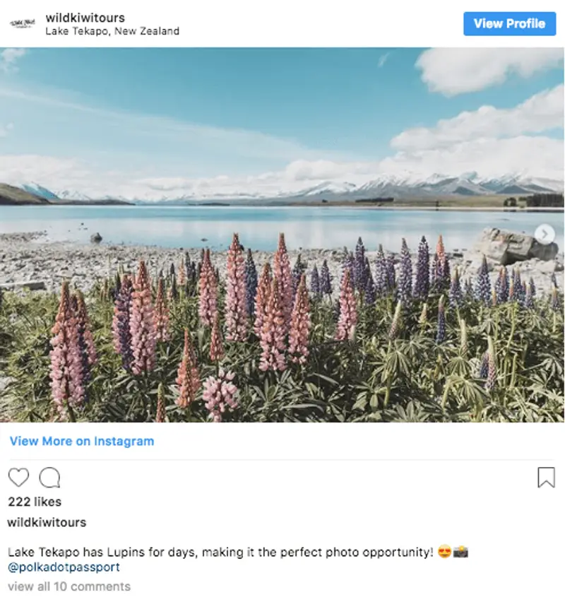 And because our local guides love to show you on and off the beaten track locations, you’re sure to have a colourful mix of experiences and places to share on the gram, all while visiting some of the best Insta locations New Zealand has to offer. So, to help stoke your #wanderlust and choose your next travel destination, we’ve put together a list of the Wild Kiwi Top 10 Insta spots in New Zealand currently hashtagging, liking and sharing their way through the ‘gram. Plus, we’ve included our top New Zealand tours that’ll see you travelling there.
